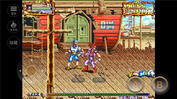 4、进入游戏后你将康总控制角色进行战斗,左边控制角色移动方向,右边A键攻击、B键跳跃;