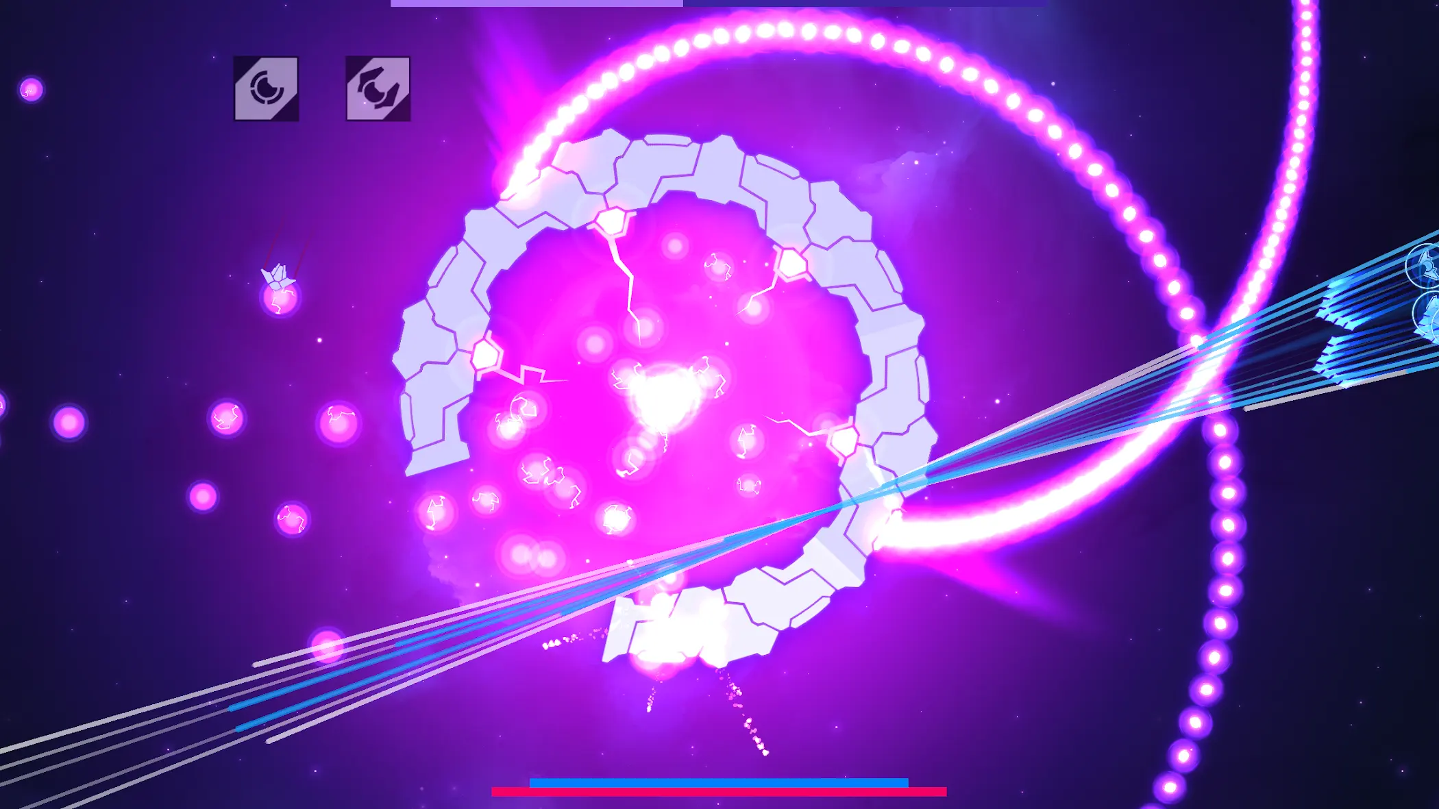 新星漂移由Chimeric Games制作发行,这是一款Roguelite太空弹幕射击游戏,把街机爽感和ARPG深度结合,操控一艘半生物半机械的进化飞船,在随机生成的太空里打无尽弹幕敌人。依靠惯性漂移走位,以及自由搭配百种模块,每局都能玩出完全不同的流派。
