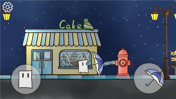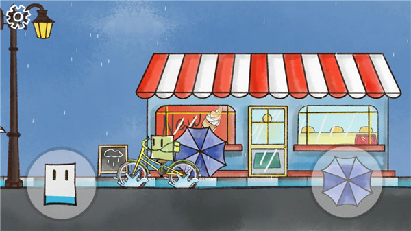 雨天是由steam同名游戏移植而来的休闲冒险手游,以超可爱的手绘画风,带玩家走进一个常年下雨的小镇。玩家化身讨厌下雨的小纸片,在雨天开启冒险之旅。路上车辆飞驰会溅起雨水,玩家既能在雨水飞来时及时点击雨伞遮挡,也能进入旁边商店躲避,让雨水被烘干。小纸片进水量有限制,全部浸入水则游戏失败。