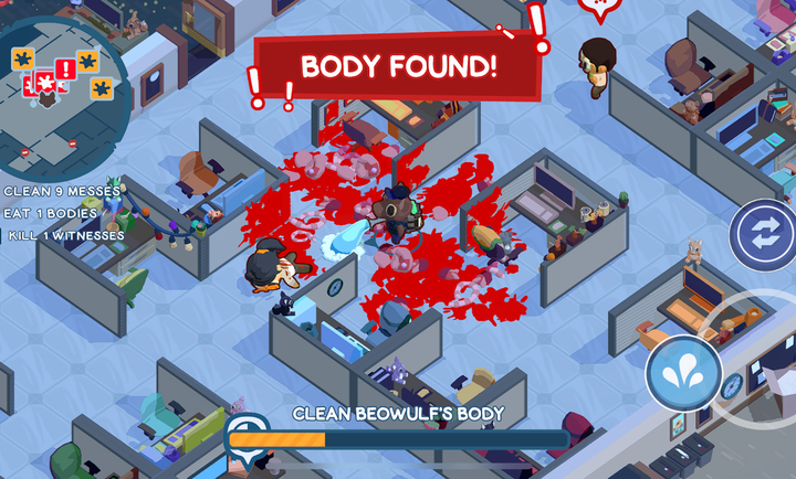 狼人清洁工手机版凑够steam上移植而来,游戏中的主角是一名清洁工,在正常状态下是一名人类清洁工,一旦遇到人类会瞬间变成狼人,从而产生攻击。因此玩家需要在有限的时间内避开人类,完成清洁任务,如果被人类发现,得立马毁尸灭迹。