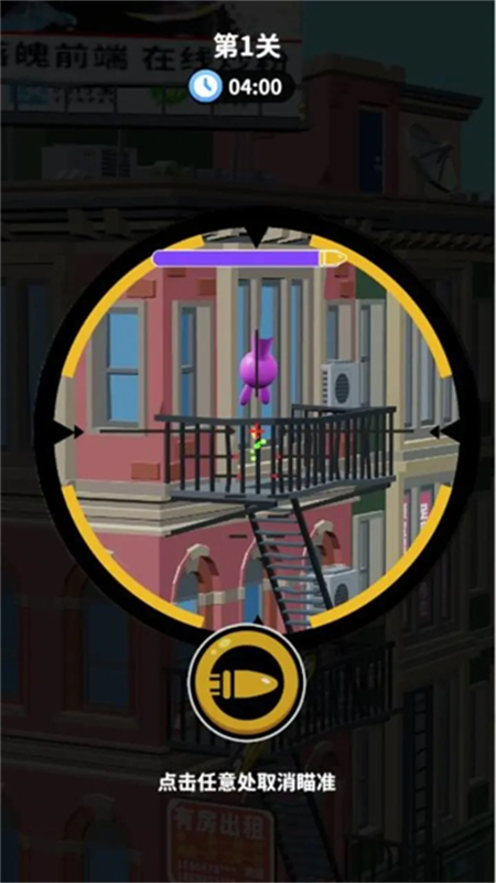 3.开始后你将作为狙击手来发射子弹攻击对手,通过射击墙壁来寻找对方的位置。
