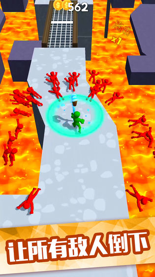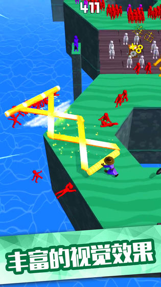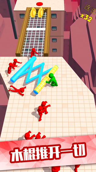 2、需要控制小人推木棍,向关卡末端推进,用你的棍子推开路上所有的敌人,将敌人通通推下水。