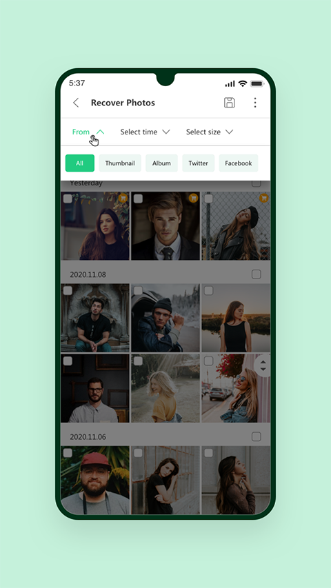 浏览扫描结果,点击进入想要恢复的图片