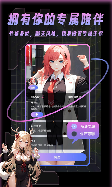 1、角色分享:将自己创建的优质角色分享到平台,供其他用户体验和互动