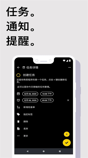 主页下方中央「+」→ 在弹出菜单点「任务」;