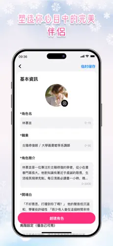 2、输入角色名称、头像、简介和人物设定,点击立即创建。