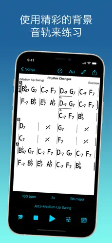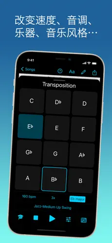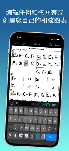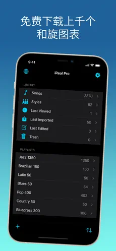 ireal pro专为音乐人打造的和弦谱工具,在安卓手机上就能管理、编辑、共享和弦谱,,输入一段和弦进行,它就能按你选的风格、速度、调式,自动生成完整乐队伴奏,自带海量和弦谱,也能自己写、自己改、和别人共享,打造乐感超强的伴奏。
