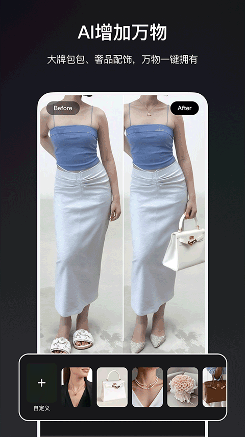 底部可换背景、加描边、调边缘羽化 → 右上角「保存」即可。