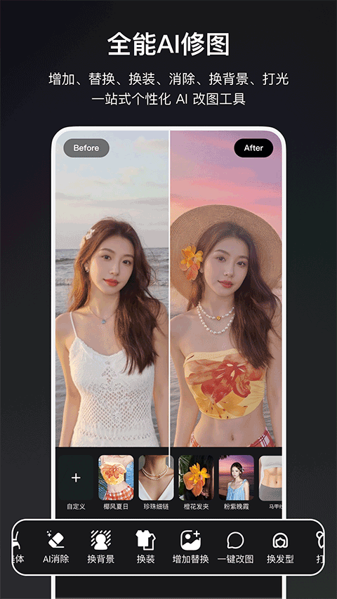 炫图AI是一站式AI修图App,把专业级 AI 修图做成一键式操作,消除、替换、抠图、扩图、换装、打光、高清、身材修饰全部 1 键完成,无需手动选区。300 + 设计师模板可直接套用或二次编辑。适合人像、电商、二次元、证件照等多场景快速出图。每日赠送 100 次基础 AI 操作(消除/抠图/高清等),轻度使用足够。
