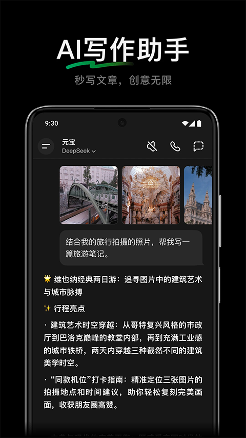 腾讯元宝是腾讯自研的 AI 助手,直接调用微信搜一搜、搜狗及全网信源,优先呈现微信公众号、视频号等腾讯生态内容,并给出可溯源的引用链接。可写报告、方案、营销文案及 Python/C++ 代码。支持一次性上传最多 10 个文件,自动生成摘要、思维导图或学术海报。所有功能无需会员即可使用,包括大模型推理、文件解析、AI 作画等。