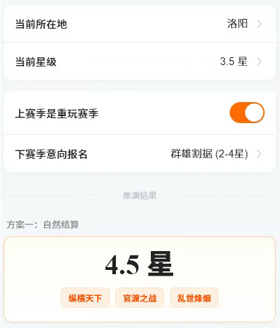 举个例子,比如你现在二刷完S6大赛季,现在你在洛阳3.5星,你还想二刷S8大赛季,但是你在纠结能不能进不进S7,现在助手都可以帮你算了: