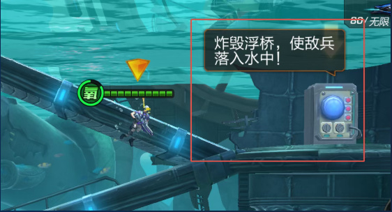 2. 玩家可以通过机关遥控,炸毁浮桥,则原本处于该线路上敌兵会绕远路前往运输车位置,且原本经过浮桥的敌兵会走到水下,受到来自水下的缺氧伤害。