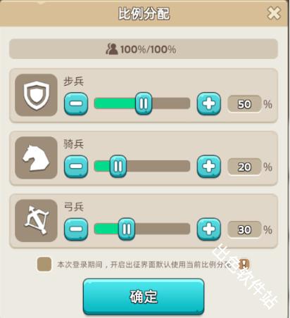 5.王城进攻:步骑弓(比例分配)5:2:3
