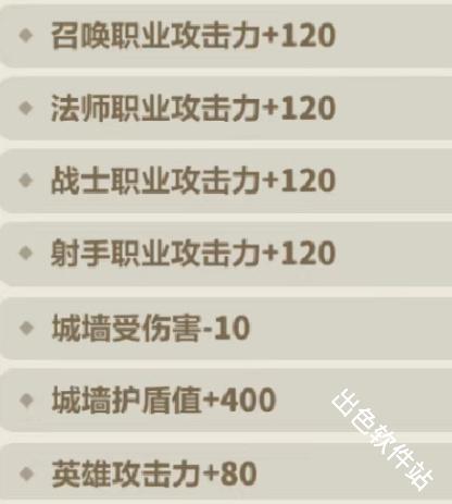 -城墙血量每降低 10%,所有英雄增伤